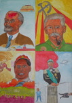 2014Lenin met "moedervlek", Kremlin en mausoleum. Stalin met hamer en sikkel. "Tsaar" Putin opvissend Loekasjenko (Wit-Rusland) en Janoekovitsj. (Oekraine) Mao Tse Toeng met o.a. mensenmassa en Chinese muur.