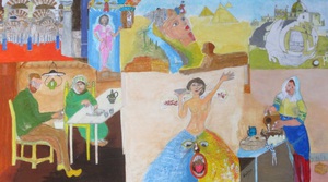 2021Inventief, (ned.) historisch, oud Egyptisch in vlakken, diepte en bolling qua vlak Naar voorbeelden Escher, Jean Thomassen, van Gogh en Vermeer.